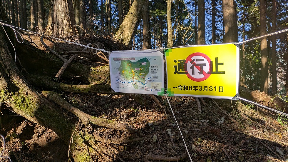 ここで4方向に道が分かれるが左右のルートは現在通行止めになっている。
