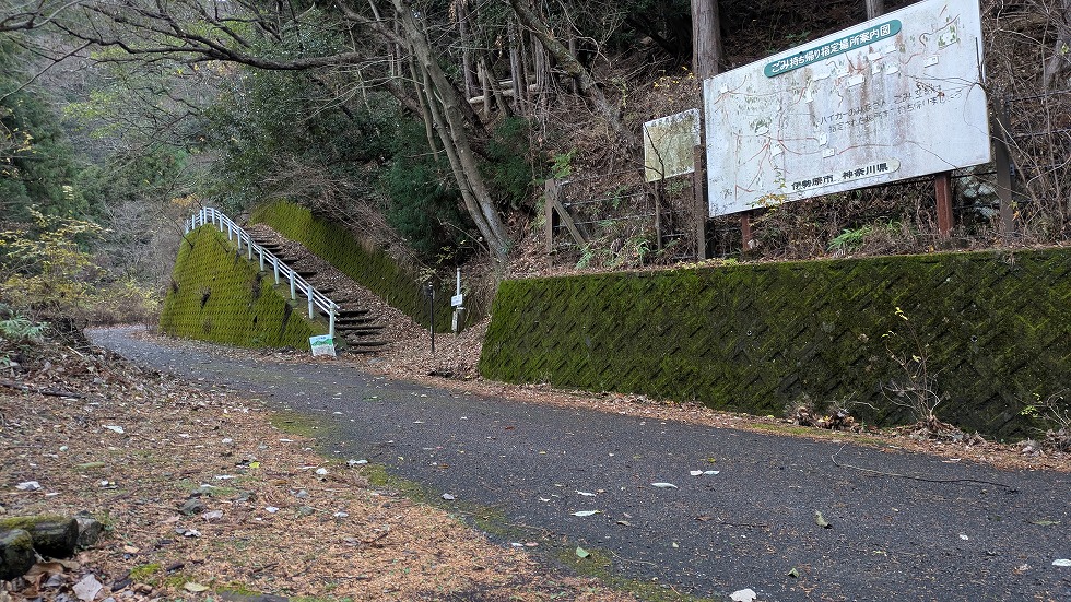 こちらは県道611号線が通る谷でこの上側にケーブルカーの下の駅が存在する。