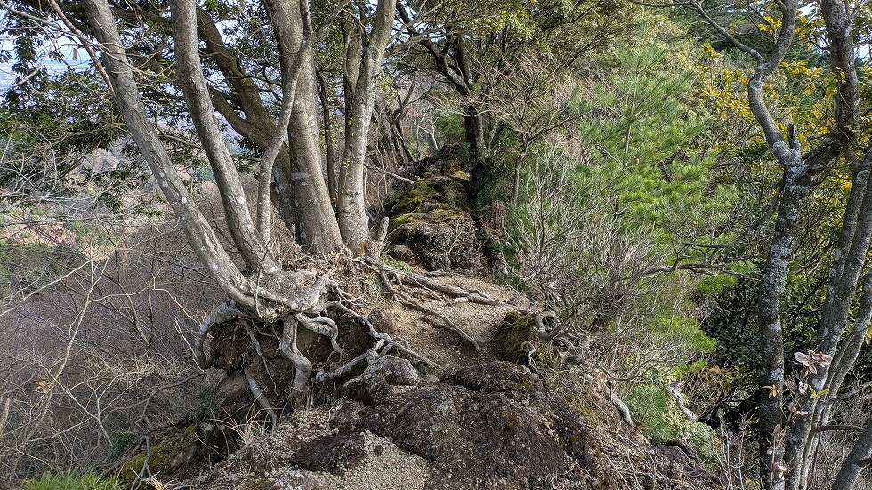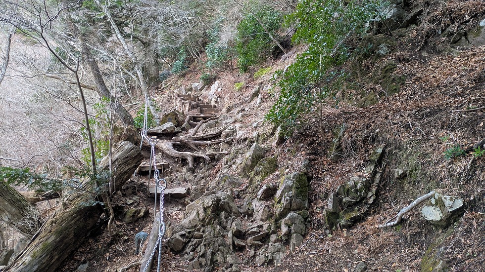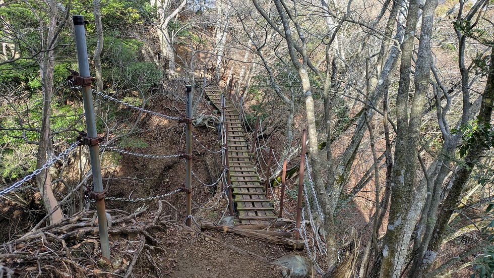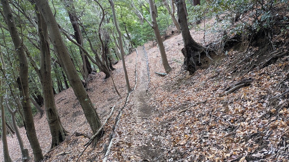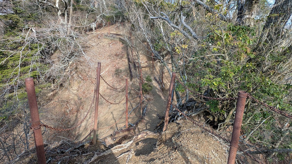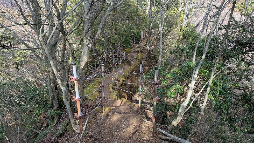 日向薬師分岐の先も尾根が細く、安全装置が数ヶ所設置されていた。