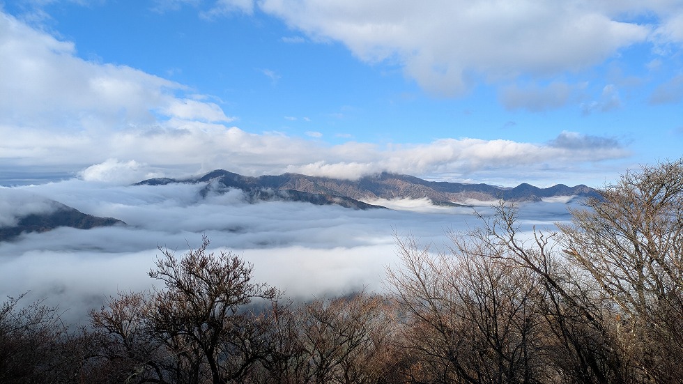 逆側の展望地に行くと丹沢山塊の手前は見事な雲海になっていた。