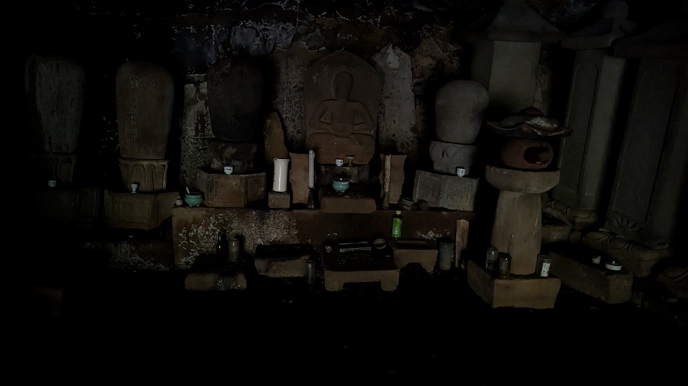 岩屋の中に入ってみたが灯りがなく、何がなんだか良く分からなかった。