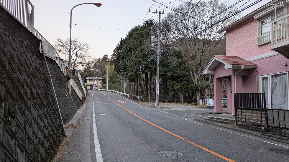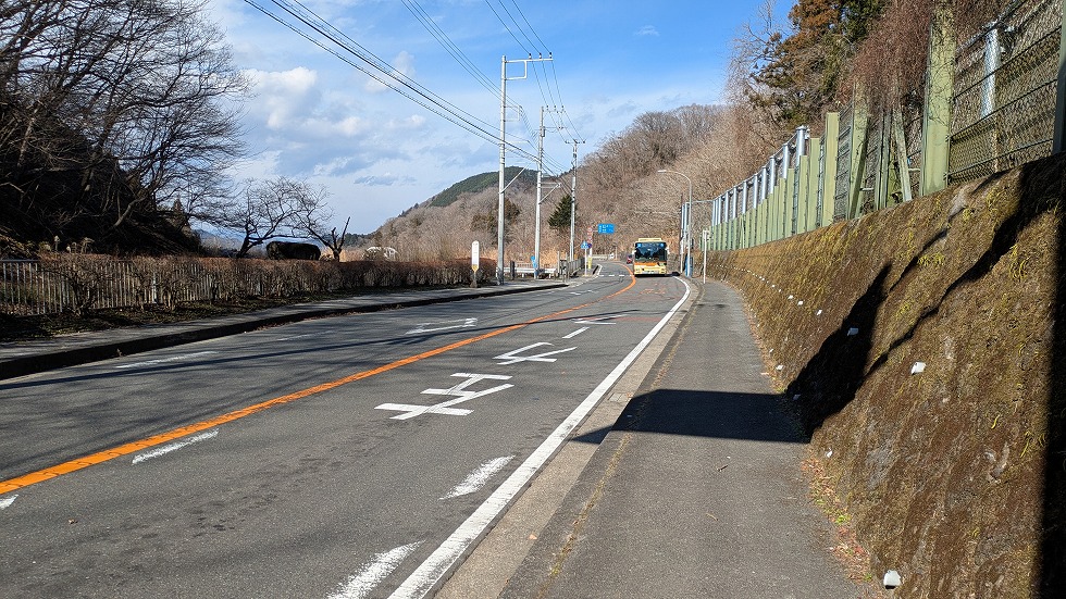この舗装林道、ストリートビューに全線載っているので一般車両が通れるようだ。