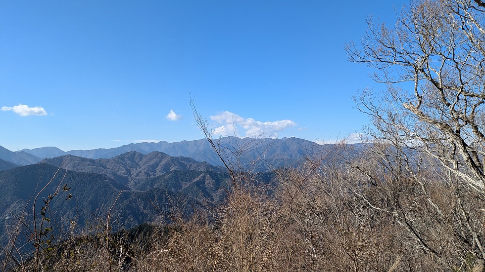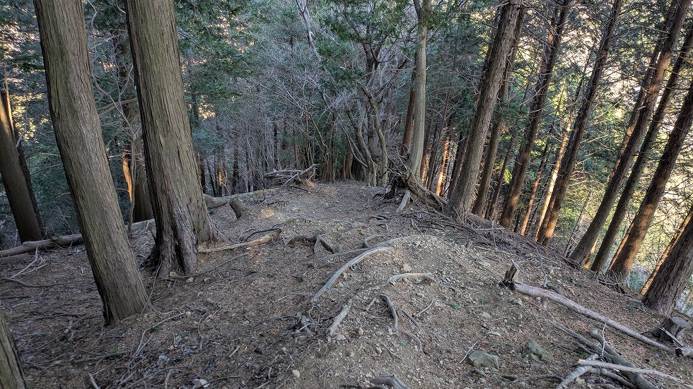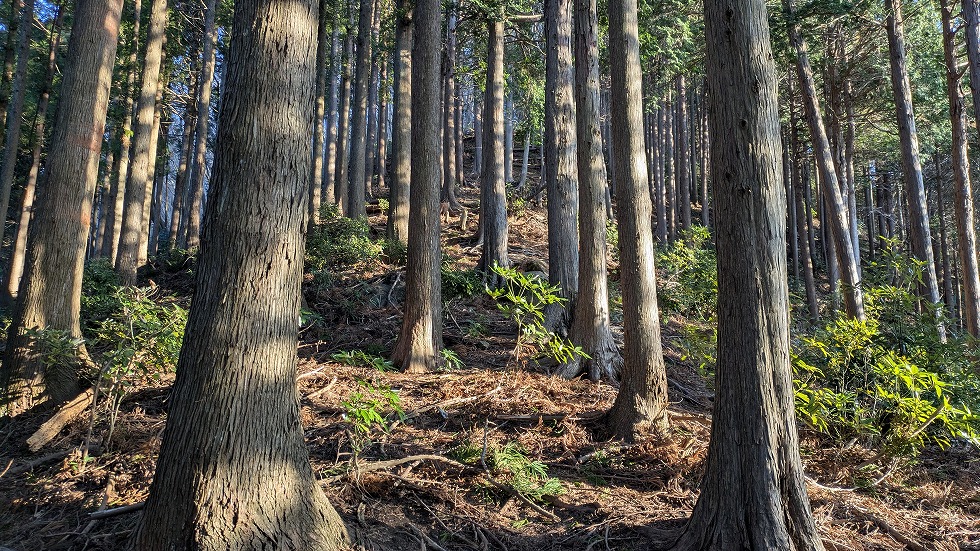 途中、先程の舗装林道と県道64号線に平行している尾根が存在して、時間に余裕があれば歩こうと思っていた。