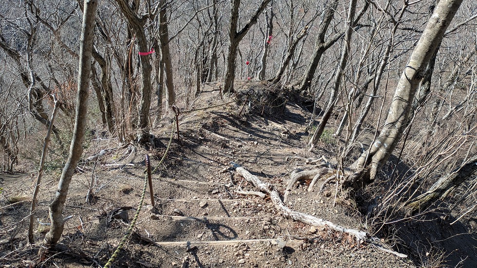 経ヶ岳の先は等高線が詰まっていたが階段が多くストレスなく下りられた。