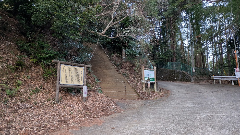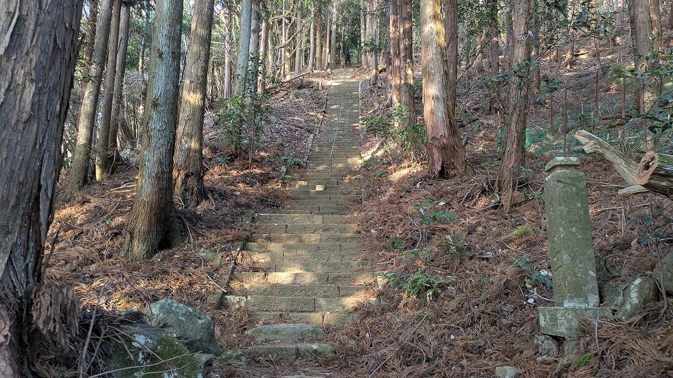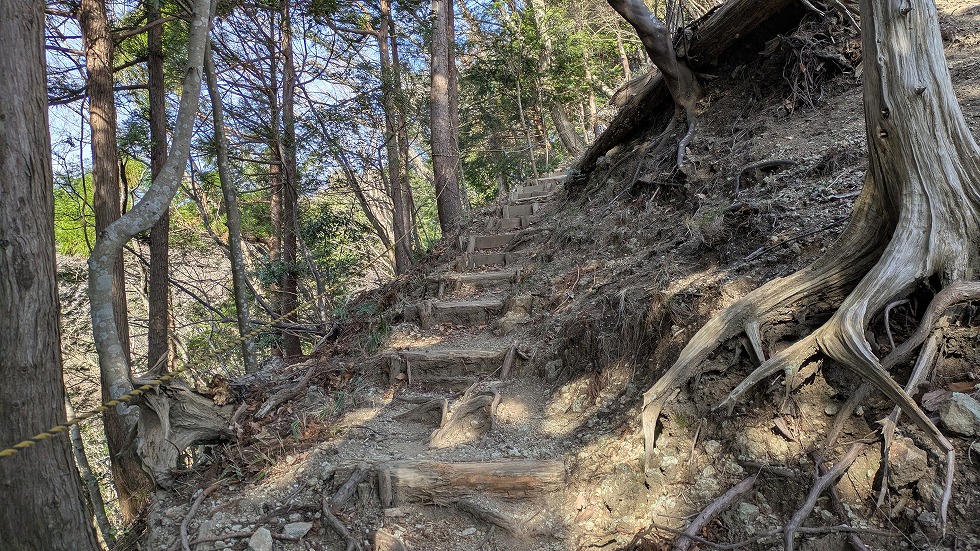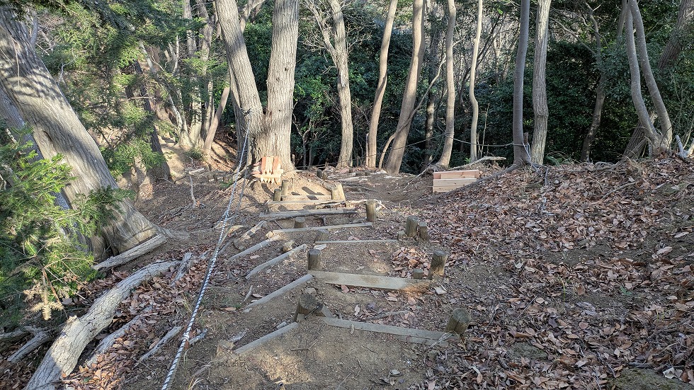 当日は行っていなかったが階段の補修中で新しい木材が積まれていた。