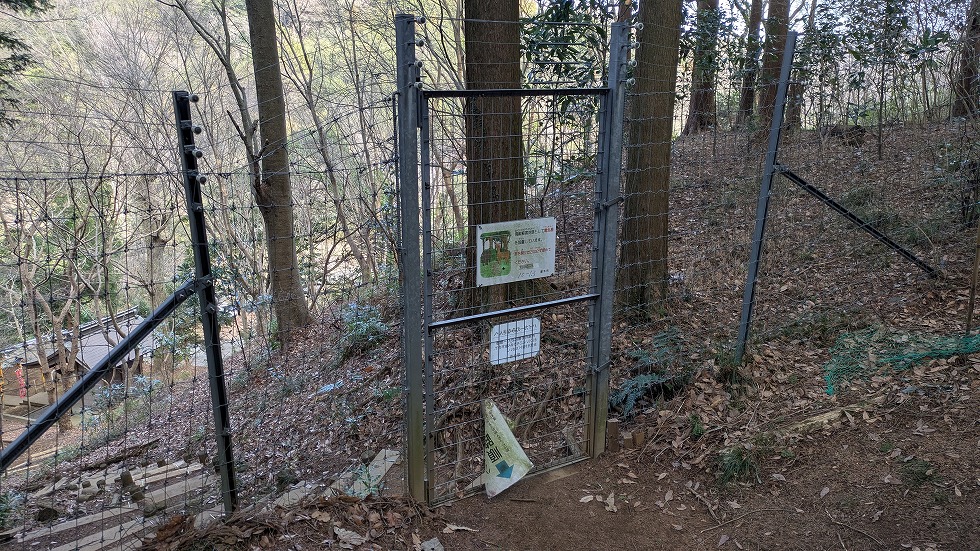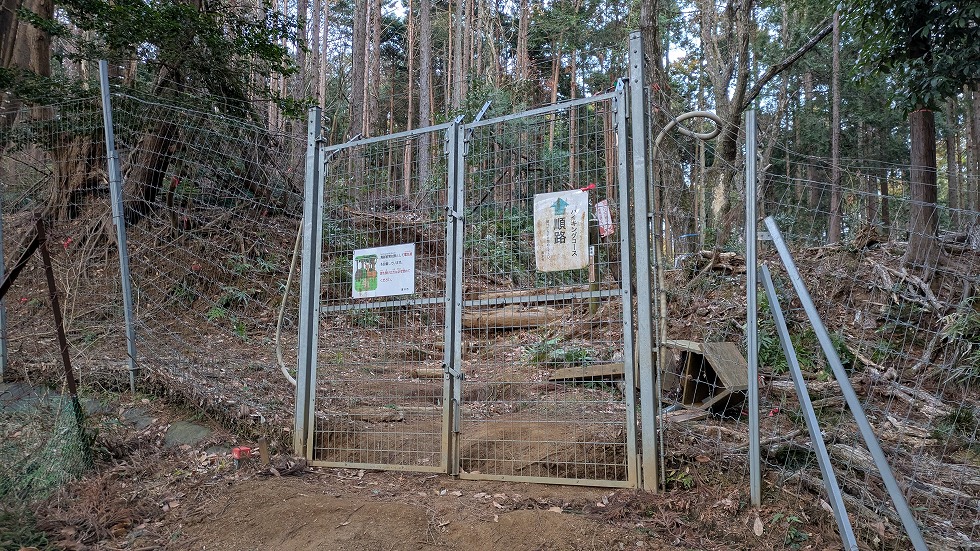 野生動物対策用の柵があったがイノシシの痕跡が数ヶ所で見られた。