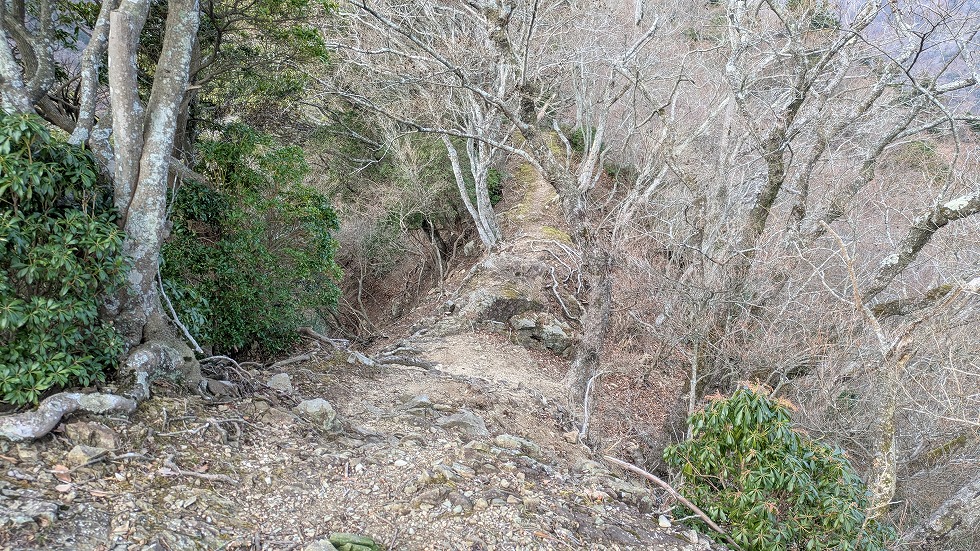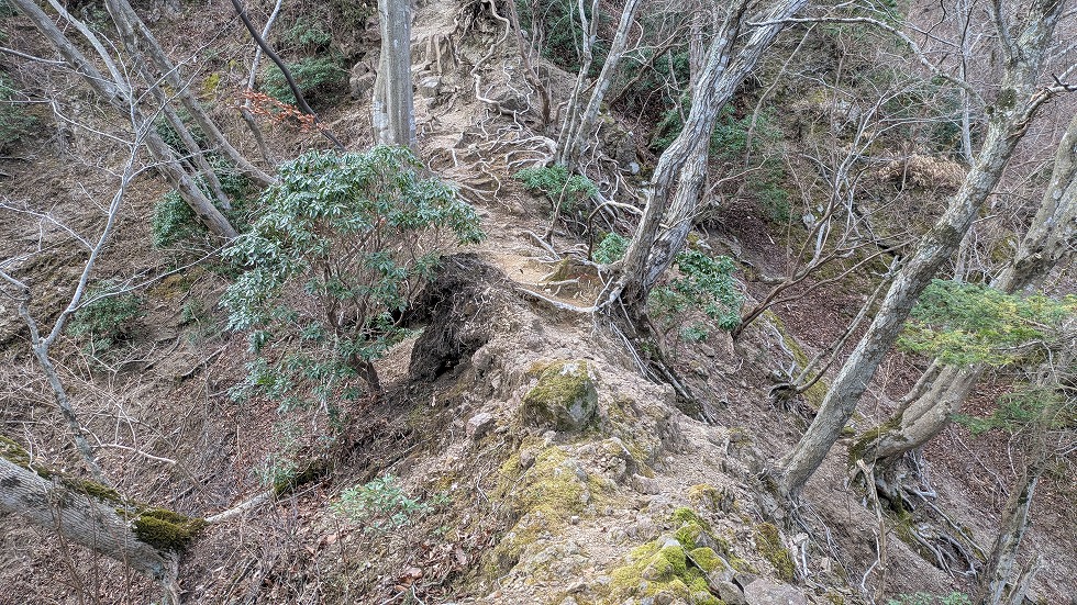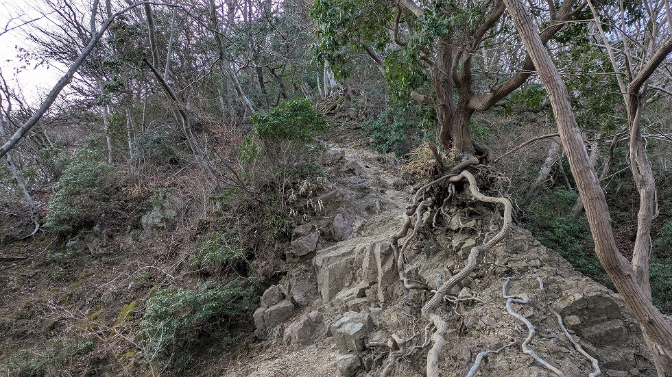 七曲峠からは、いきなり岩混じりの急勾配になった。