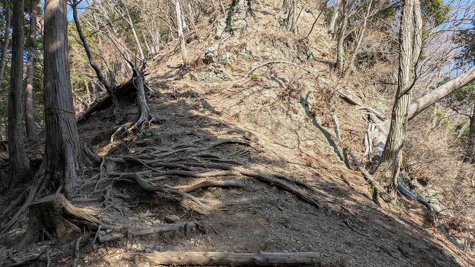 尾根上は乾燥した土質で右下なんかは草木があまり生えていなかった。