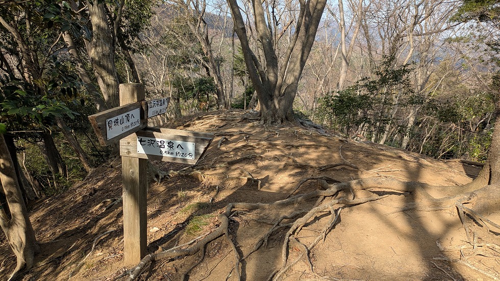 日向山と見城山の鞍部は七曲峠と言うそうだ。