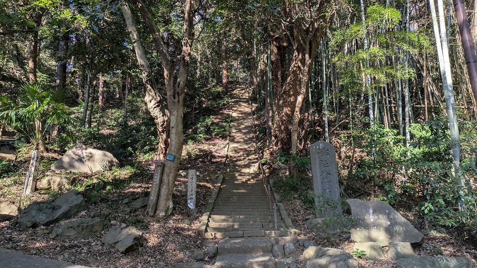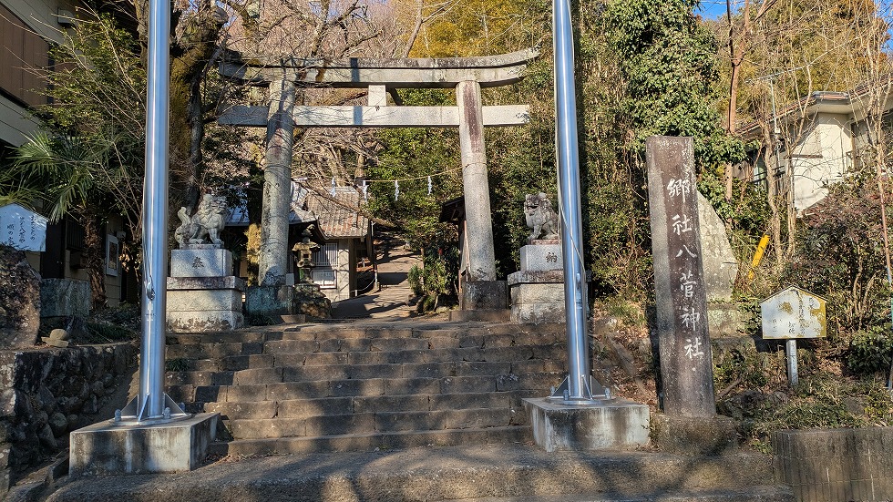 八菅神社までは石段を使ったが舗装路を歩いても行く事が出来る。