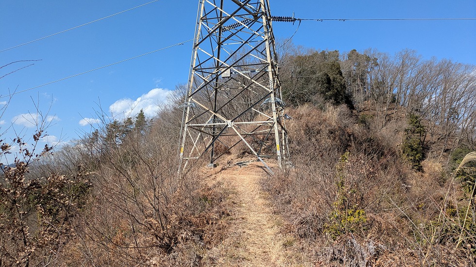この送電鉄塔、石砂山の先にあった送電鉄塔と同じ路線だった。