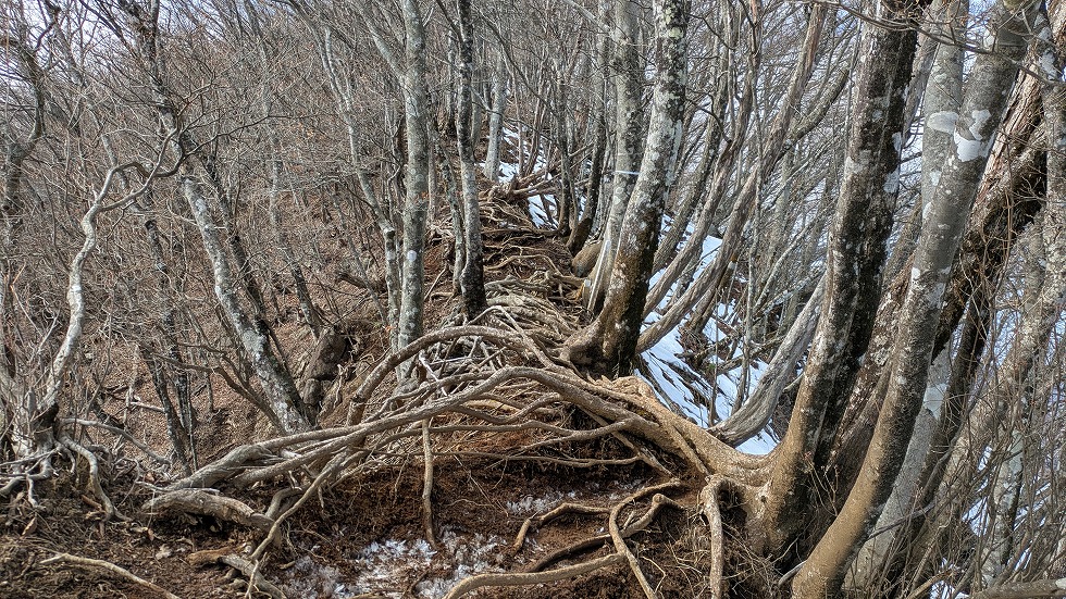 上の方は積雪が多かったが踏み跡があったのでルートをロストする事がなかった。
