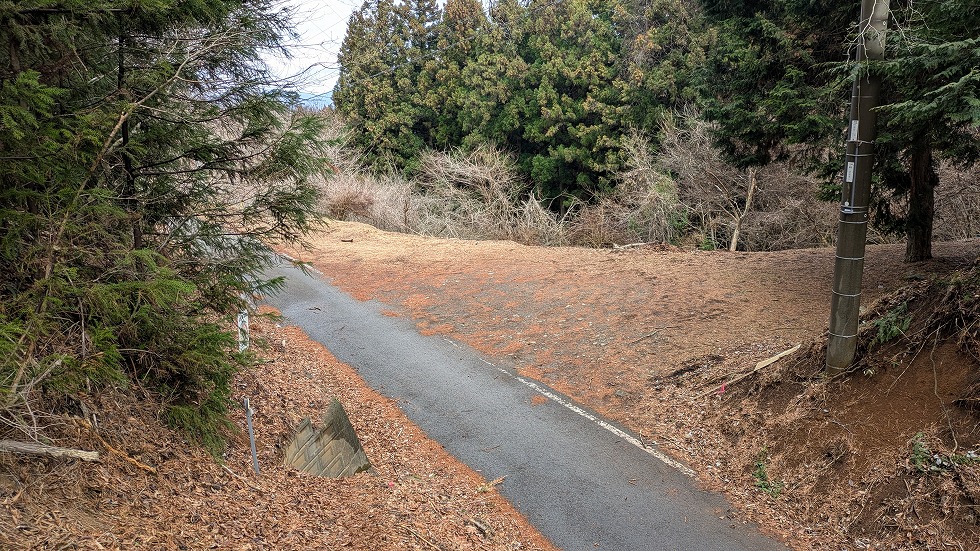 ゴルフ場の向こうが距離がありそうな尾根になった。