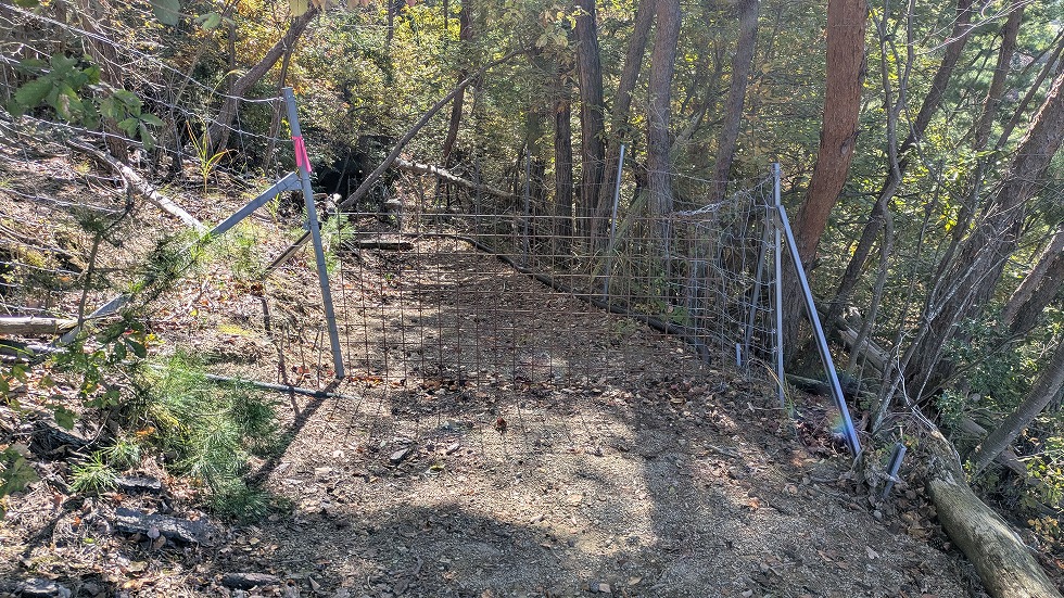下山ルートは浅い溝ルートが大半で多少の障害物が落ちていたが今までより大分マトモな登山道だった。
