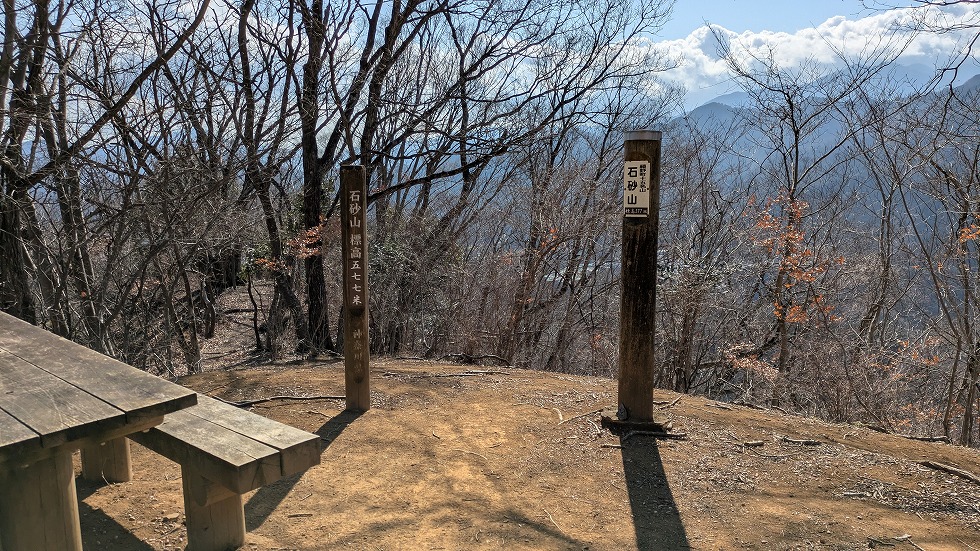 石砂山からは石老山が確認出来たがのっぺりとした山容だった。