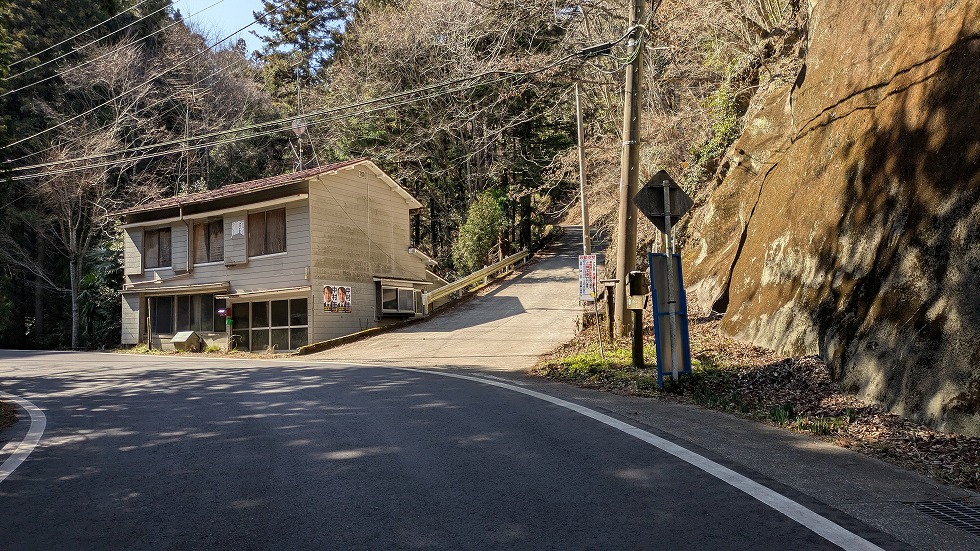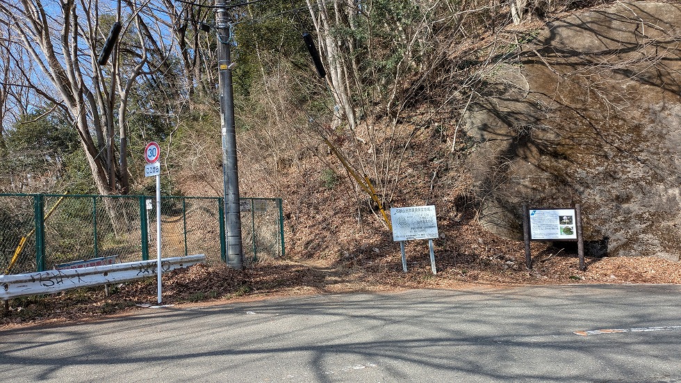 県道518号線への下降ポイントは軽度な岩場になっていた。