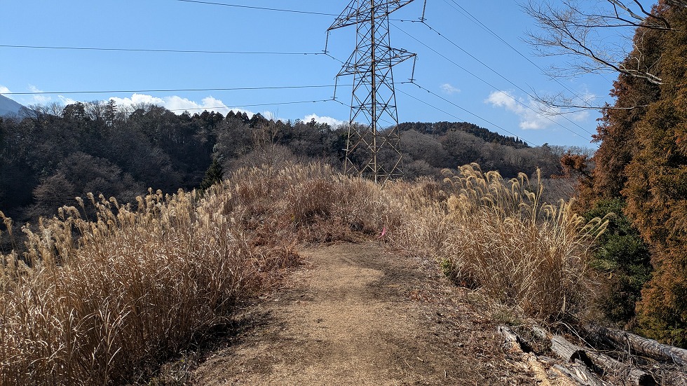 この送電鉄塔、石砂山の先にあった送電鉄塔と同じ路線だった。