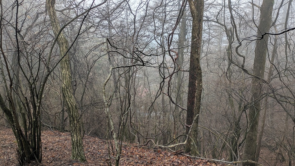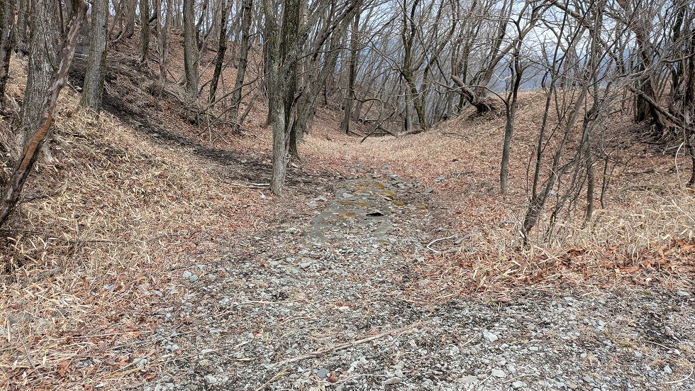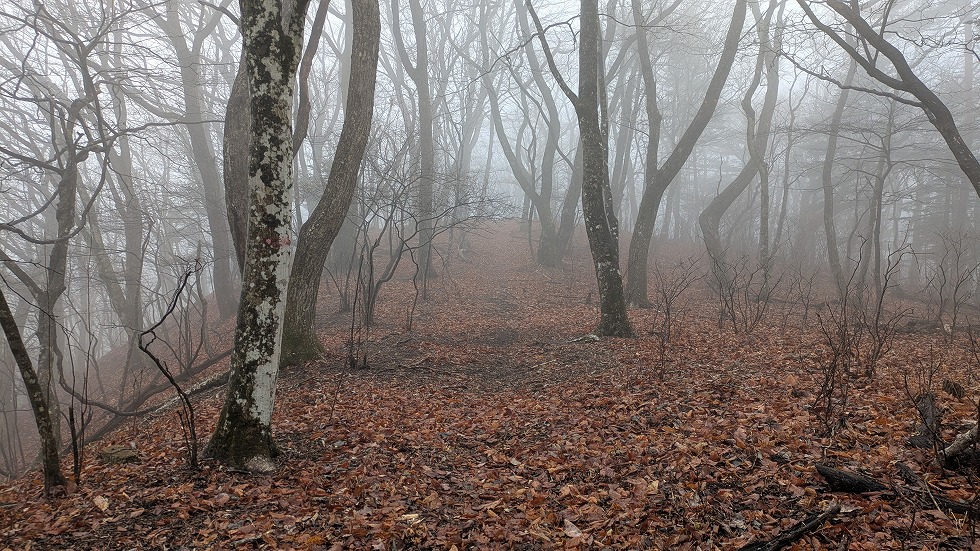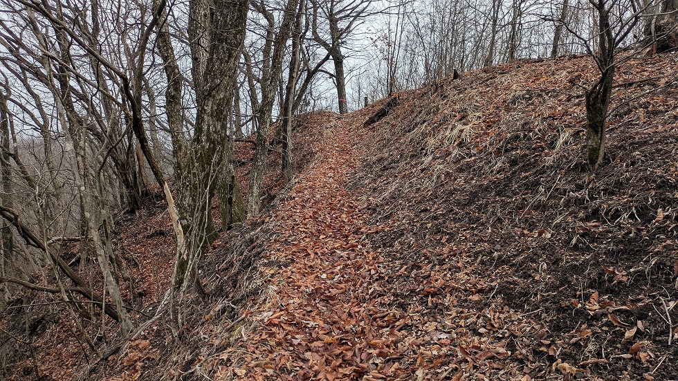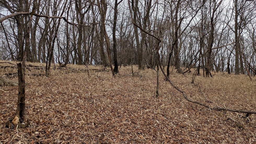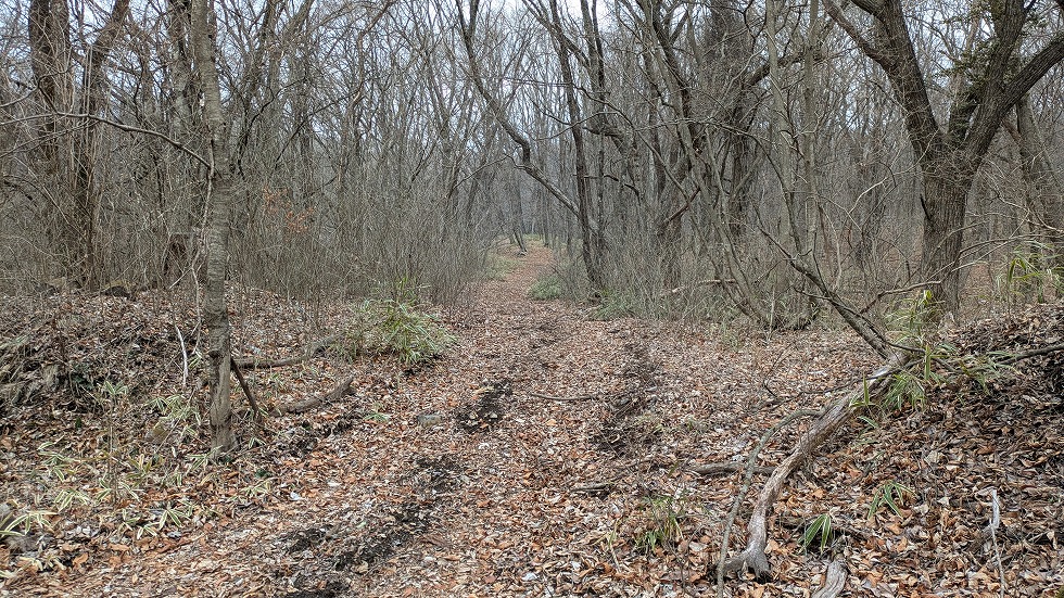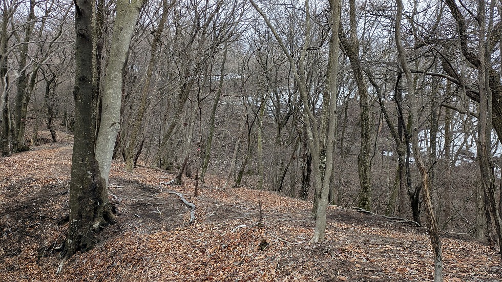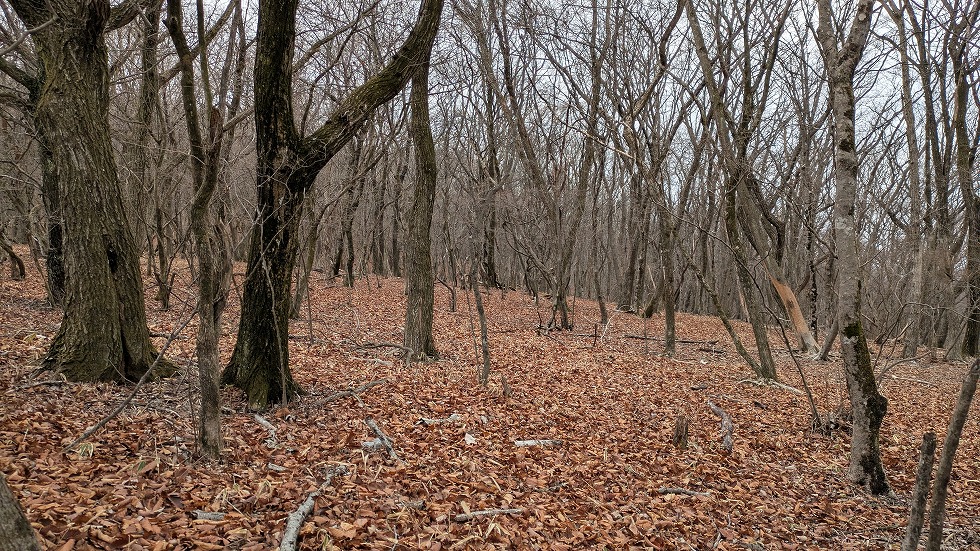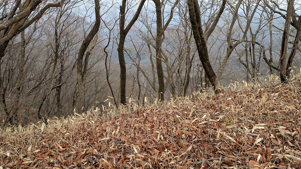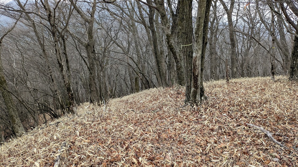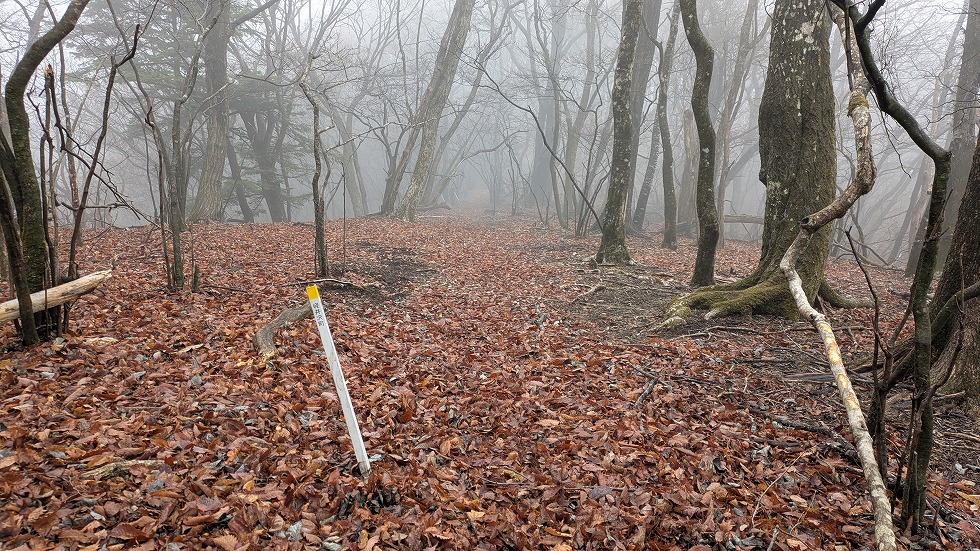 尾根が広い場所は枯れ葉のせいでルートが不明瞭だった。