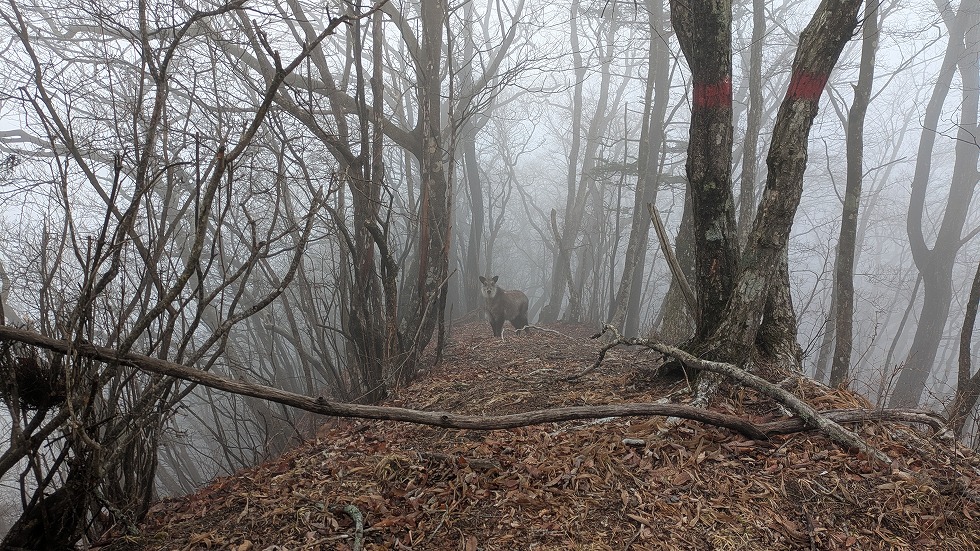 群馬県側の支尾根の方から視線を感じたので首をひねるとカモシカがガン見していた。