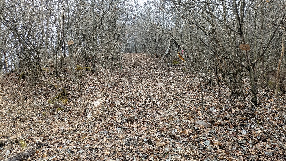 尾根上には軽井沢町が設置した杭や基準点が沢山設置されていた。