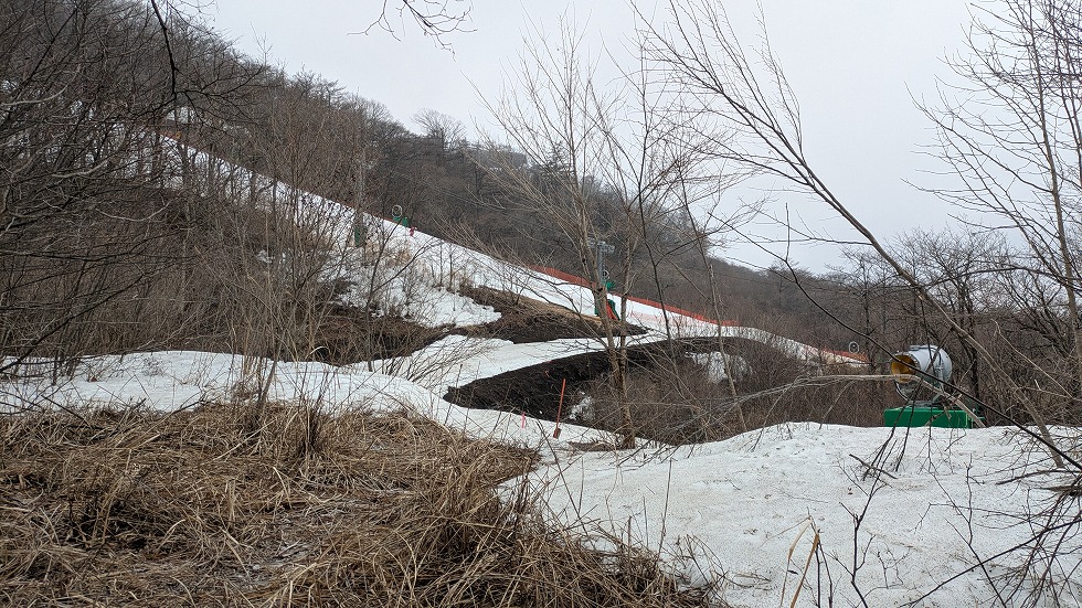 右側がスキー場になったがスキーヤーは殆ど居なかった。