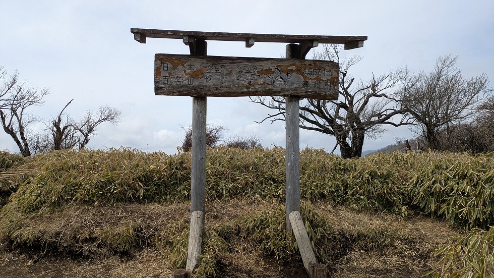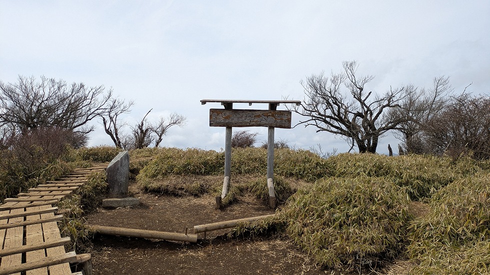 近くに登山者が居ない内に山頂の標識を撮影してしまう。